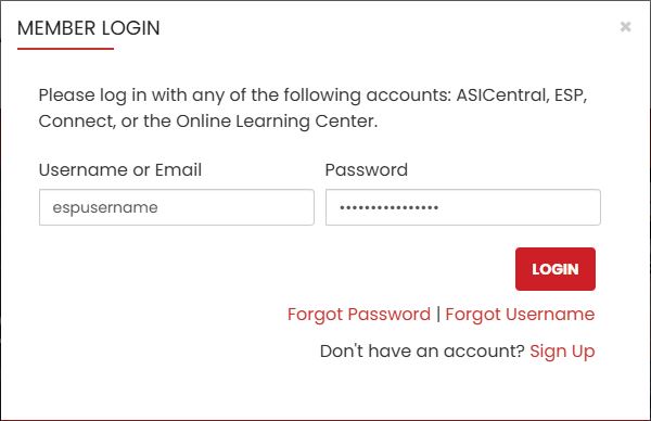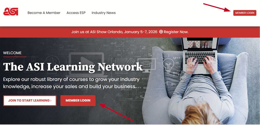 If you are not logged into ESP+ and/or ASI Central, but are an ASI member, click on the Member Login button.