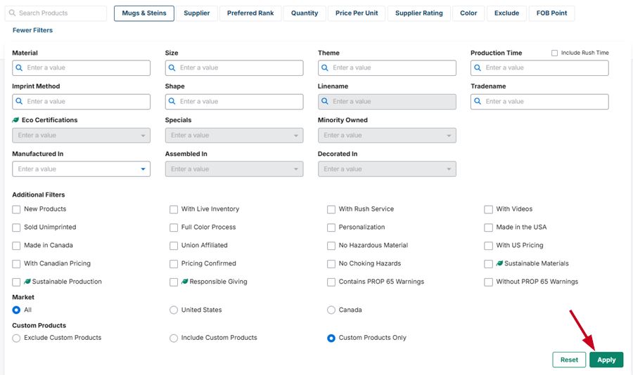 Use any combination of the available options to select filters for the search and then click on the Apply button.
