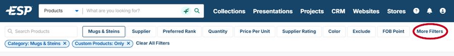 After doing a basic search, you have the ability to use a vary of filters to narrow the results, as well as save the search. The filters are a great way to quickly locate exactly the types of products you need. If you have done an Advanced Search, the criteria entered in the search fields will be displayed as Filters in the product search results. To apply a filter, use the options displayed above the search results or click on the More Filters link to expand the filter options.