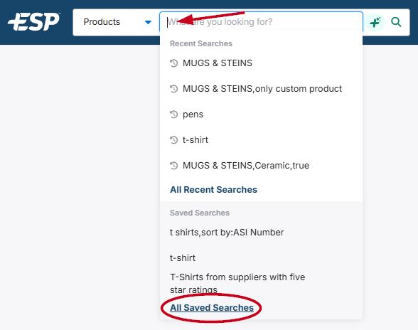 To find your saved searches by clicking into the search bar and clicking All Saved Searches.