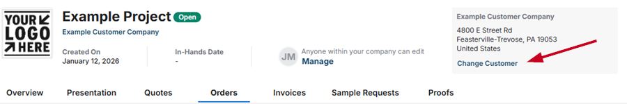 When creating an order document, presentation, or project, users are asked the select an associated customer.