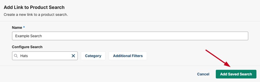 Linking to a product search allows you to create a navigation button linked to a customized saved search.